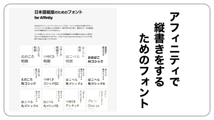 Affinityで縦書きをするためのフォント