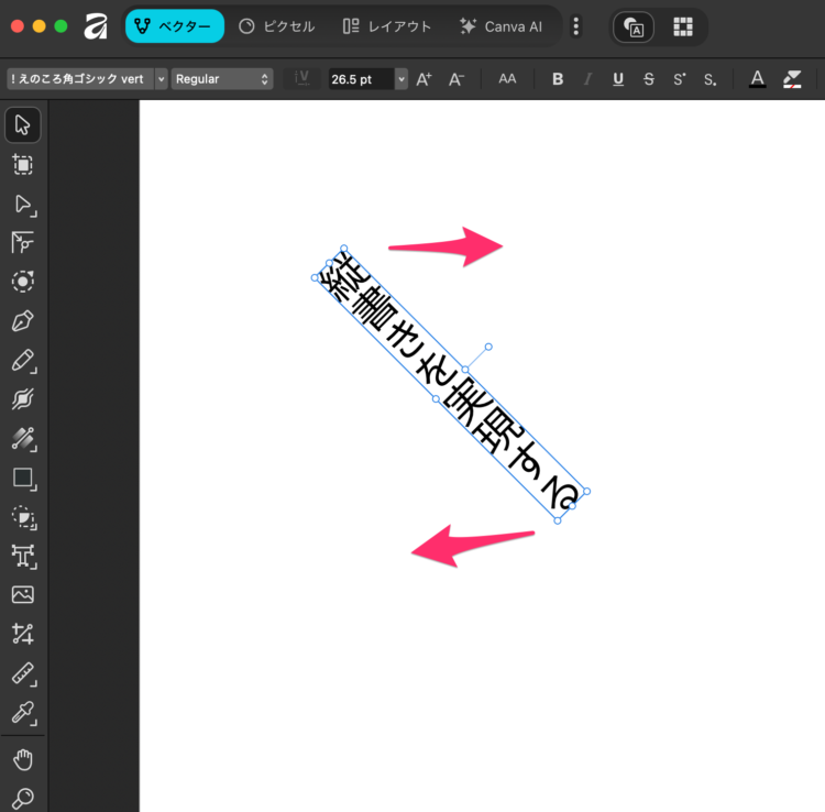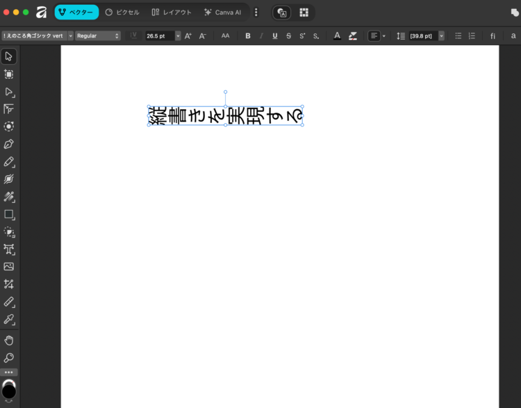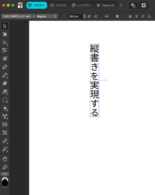 Affinityでは縦書きにする機能がないので、いつも通り横書きで文字を入力します。
