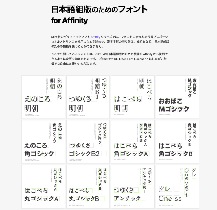 日本語組版のためのフォント for Affinity